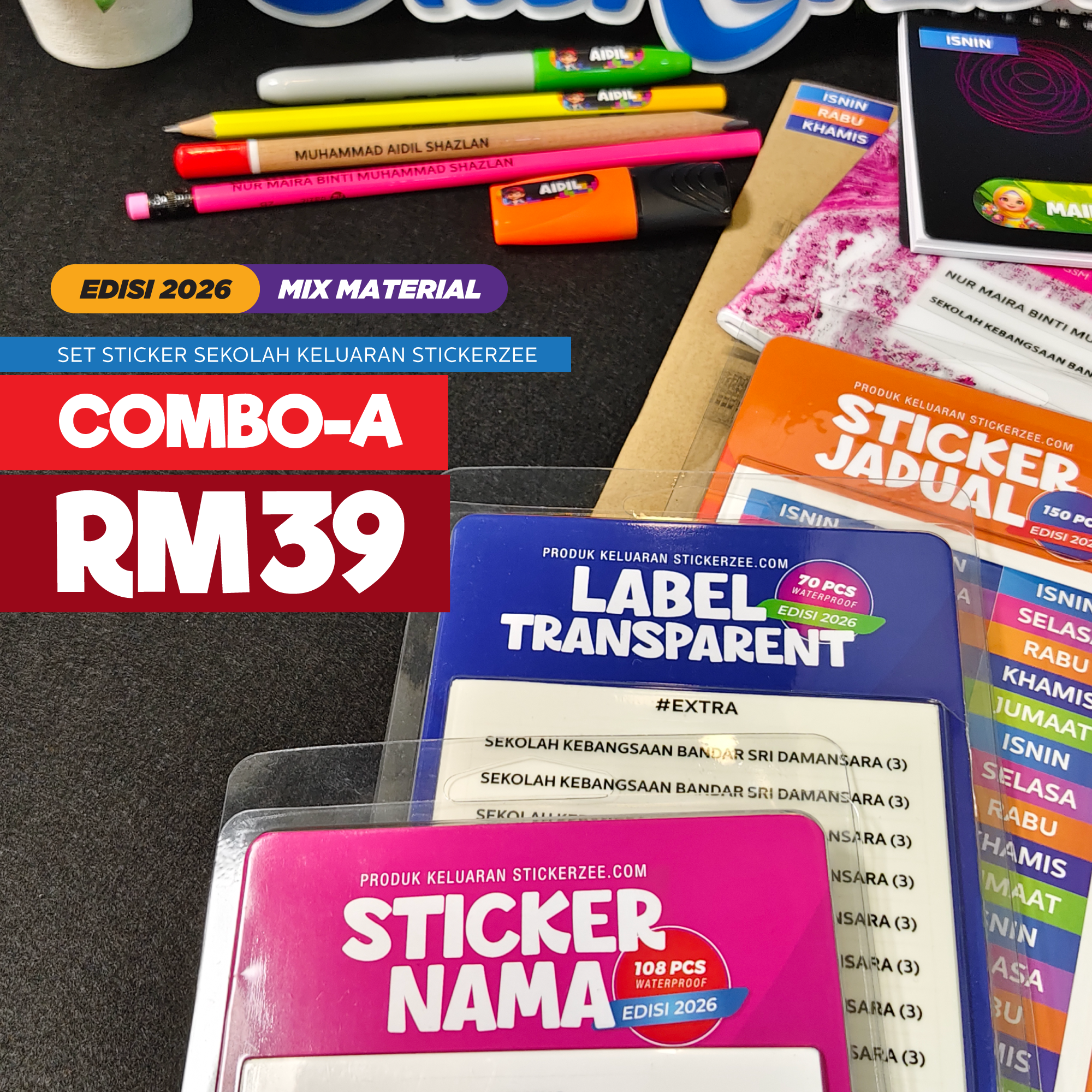 Combo A – Sticker Nama, Sticker Jadual, & Label Transparent